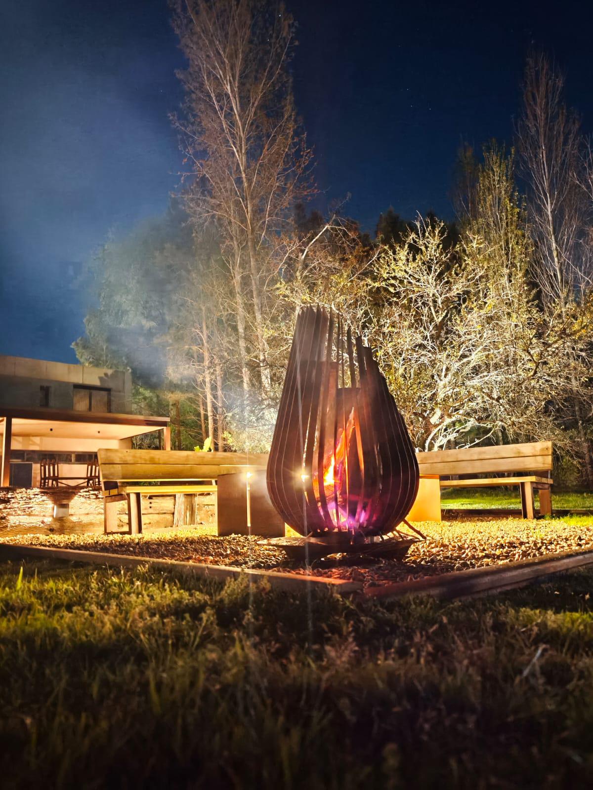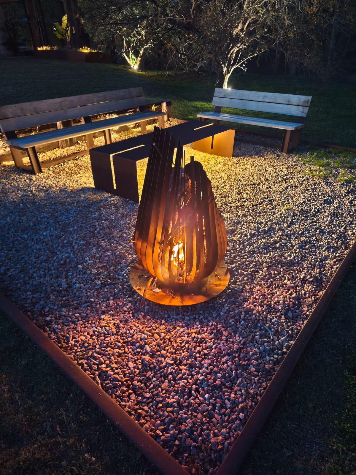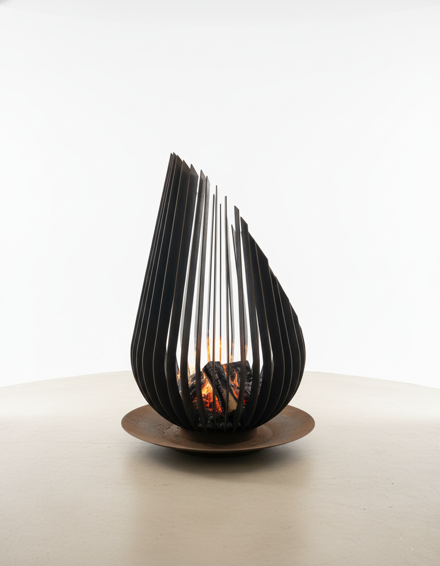 El Fogón Afrodita es una pieza escultórica de fuego y diseño. Inspirado en los pétalos cerrados de una flor de acero, su forma envolvente evoca elegancia, protección y equilibrio. Fabricado íntegramente en acero corten, adquiere con el tiempo una pátina natural que lo hace único y resistente a la intemperie.