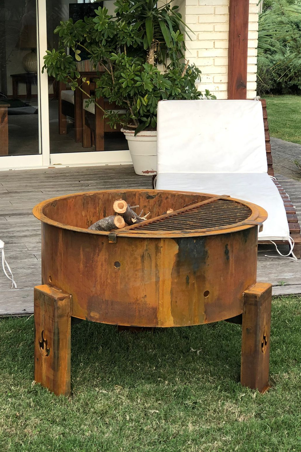 Apolo fue diseñado para quienes valoran el fuego como experiencia y como objeto funcional. Su estructura sólida en acero corten aporta presencia y durabilidad, integrándose con naturalidad en distintos espacios exteriores. Cuenta con plancha y parrilla independientes, lo que permite cocinar distintas preparaciones en simultáneo, aprovechando diferentes temperaturas y tiempos de cocción de forma práctica y ordenada.