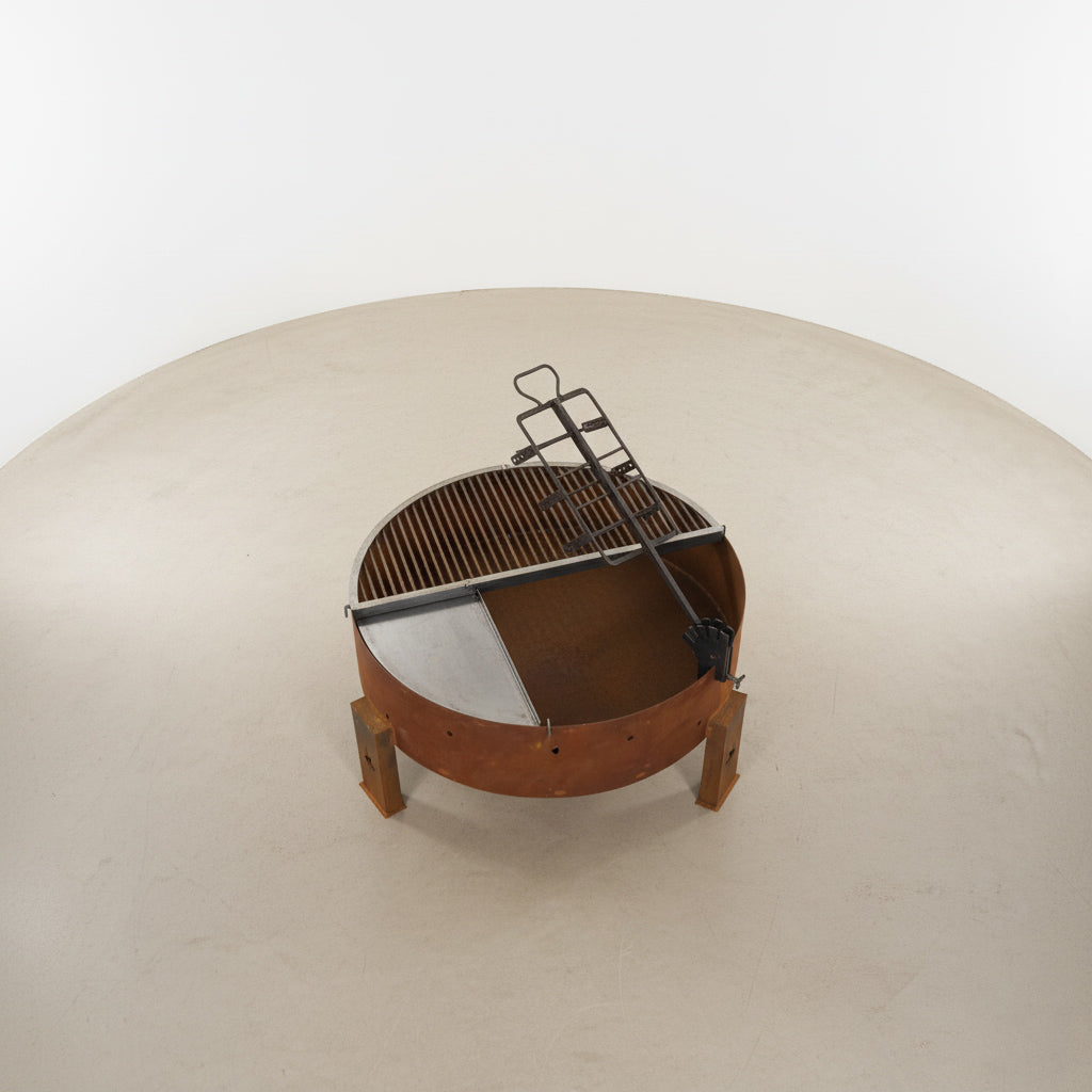Aquiles está pensado para quienes disfrutan de reuniones grandes. Su estructura robusta en acero corten y su amplia parrilla ofrecen una experiencia completa. Ideal para cocinar con comodidad y estilo, aportando presencia y durabilidad a cualquier espacio.