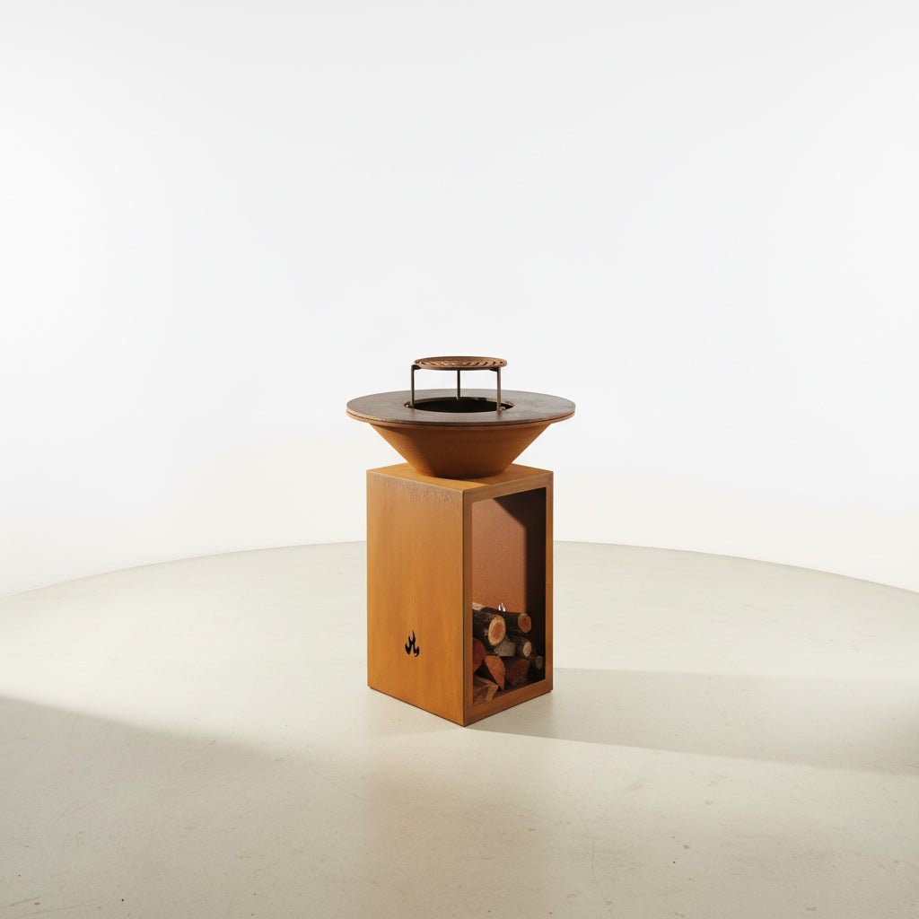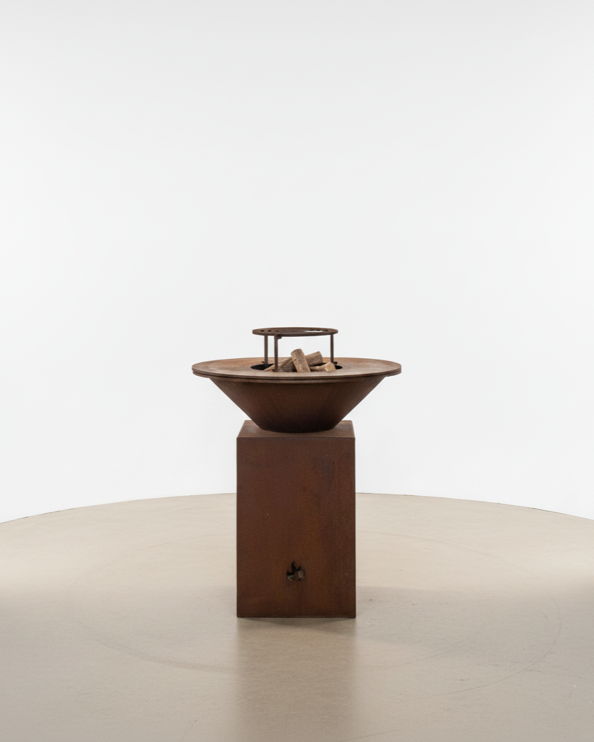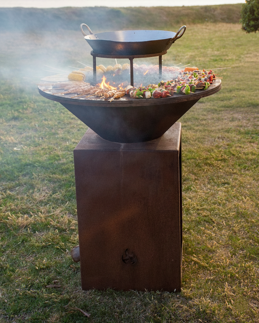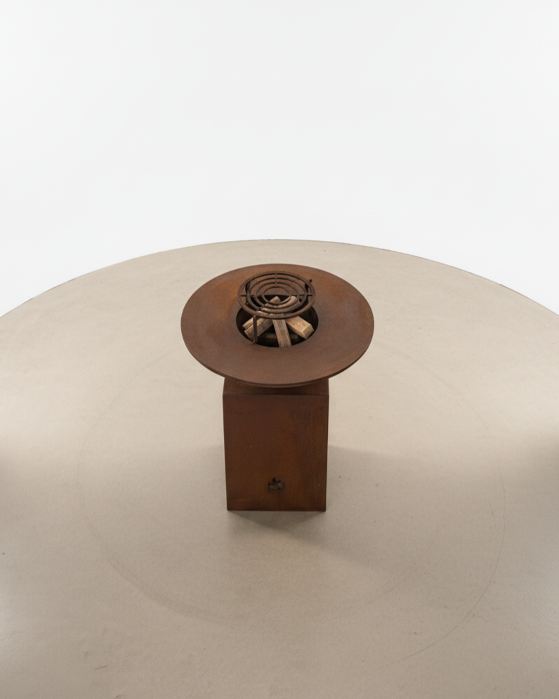 Parrilla: Hierro plancha 1/2” (12.7 mm), desmontable Ø 40 cm