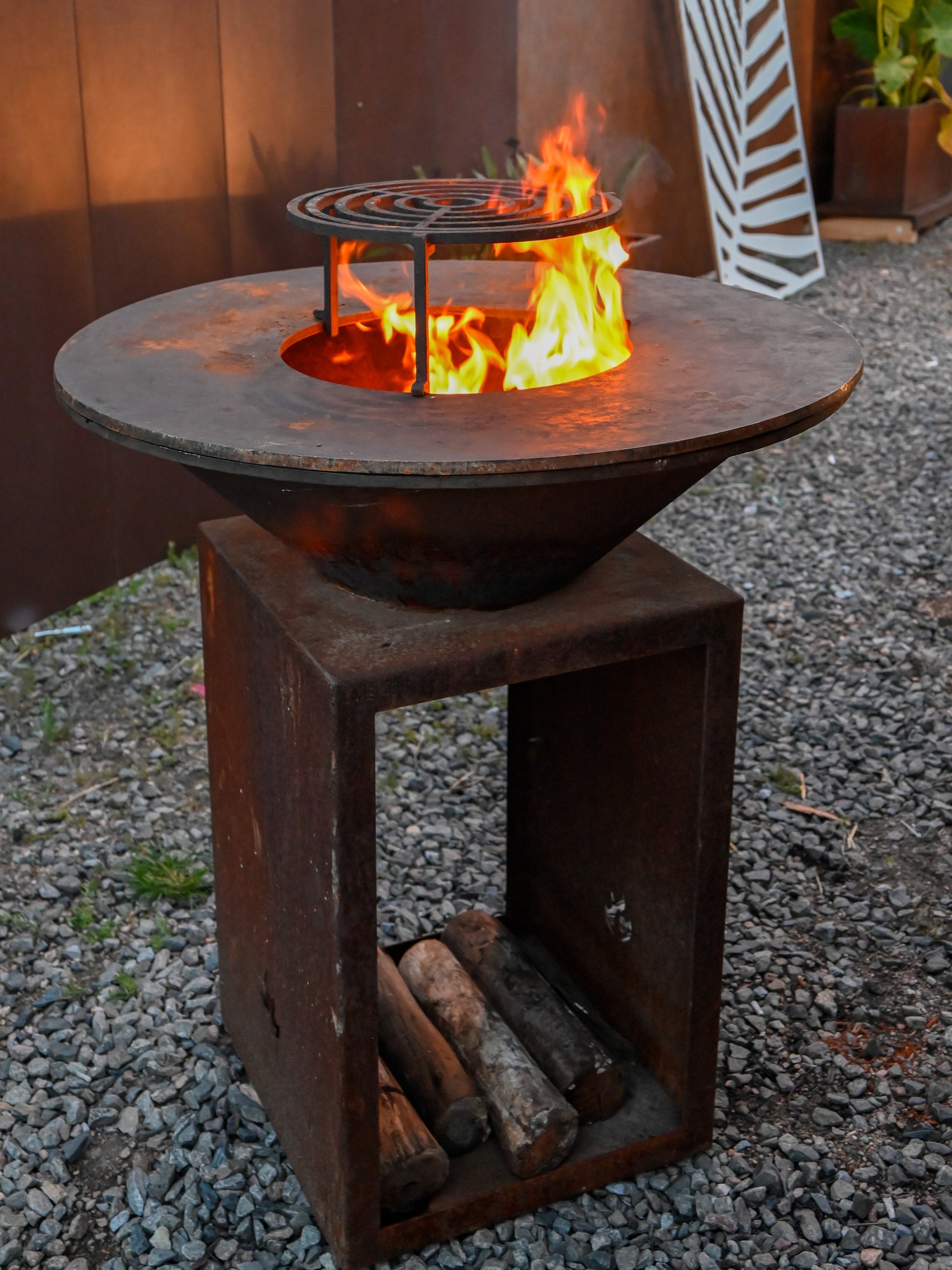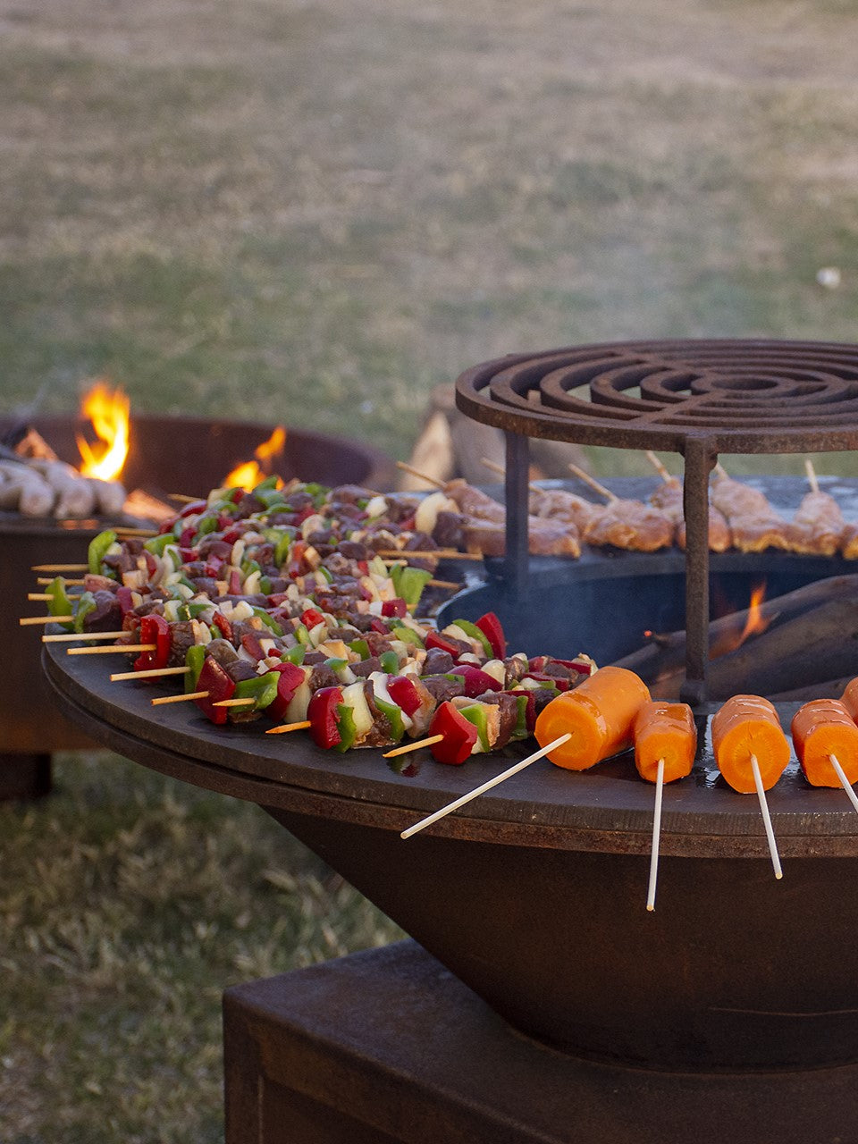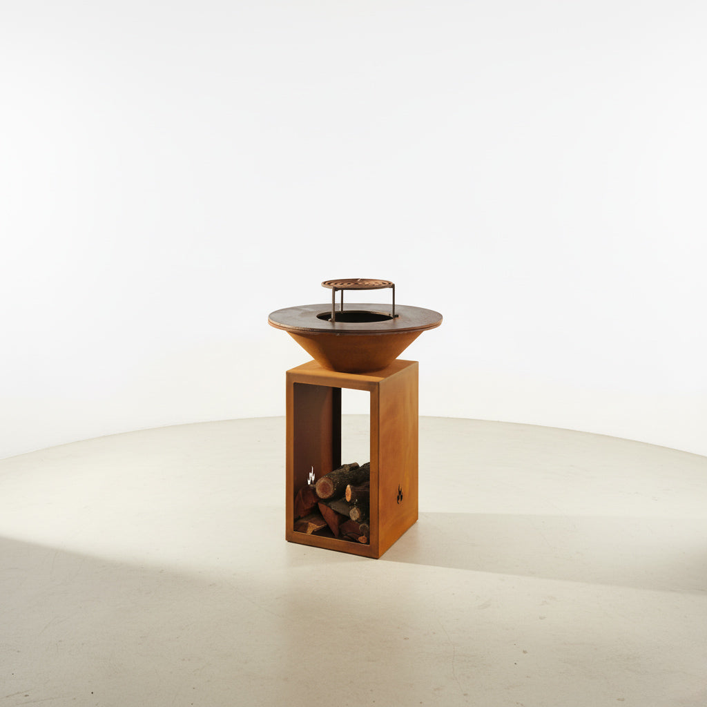 Parrilla: Hierro plancha 1/2” (12.7 mm), desmontable Ø 40 cm